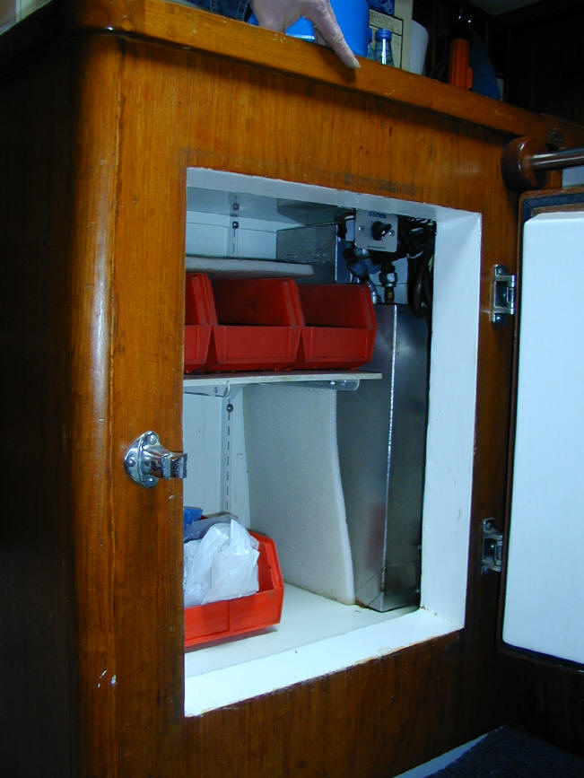 Cheoy Lee custom offshore cutter for sale - galley Cheoy Lee custom offshore cutter for sale - fridge in galley  Cheoy Lee custom offshore cutter for sale - heads  Cheoy Lee custom offshore cutter for sale - freezer in galley